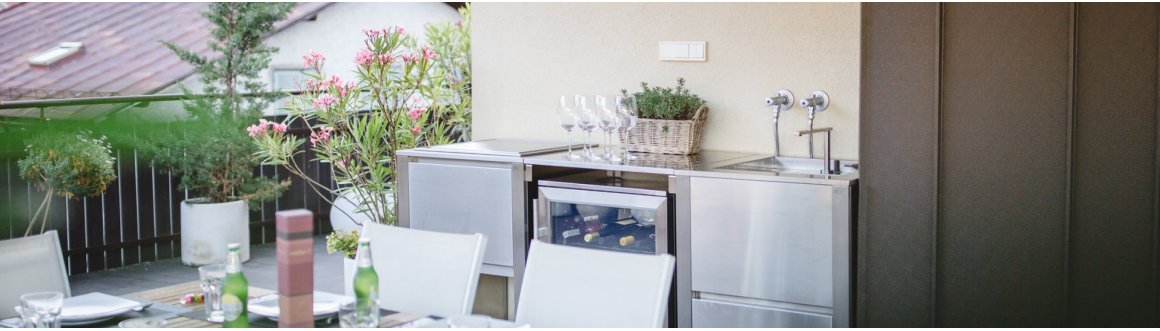 Med et udekøkken fra JOKODOMUS kan du lave hele dit måltid udenfor. Alle dine køkkenredskaber er samlet ét sted og du kan tilpasse dit udekøkken, således at det har alle de muligheder, som du er vant til fra dit indendørs køkken.